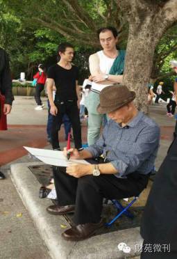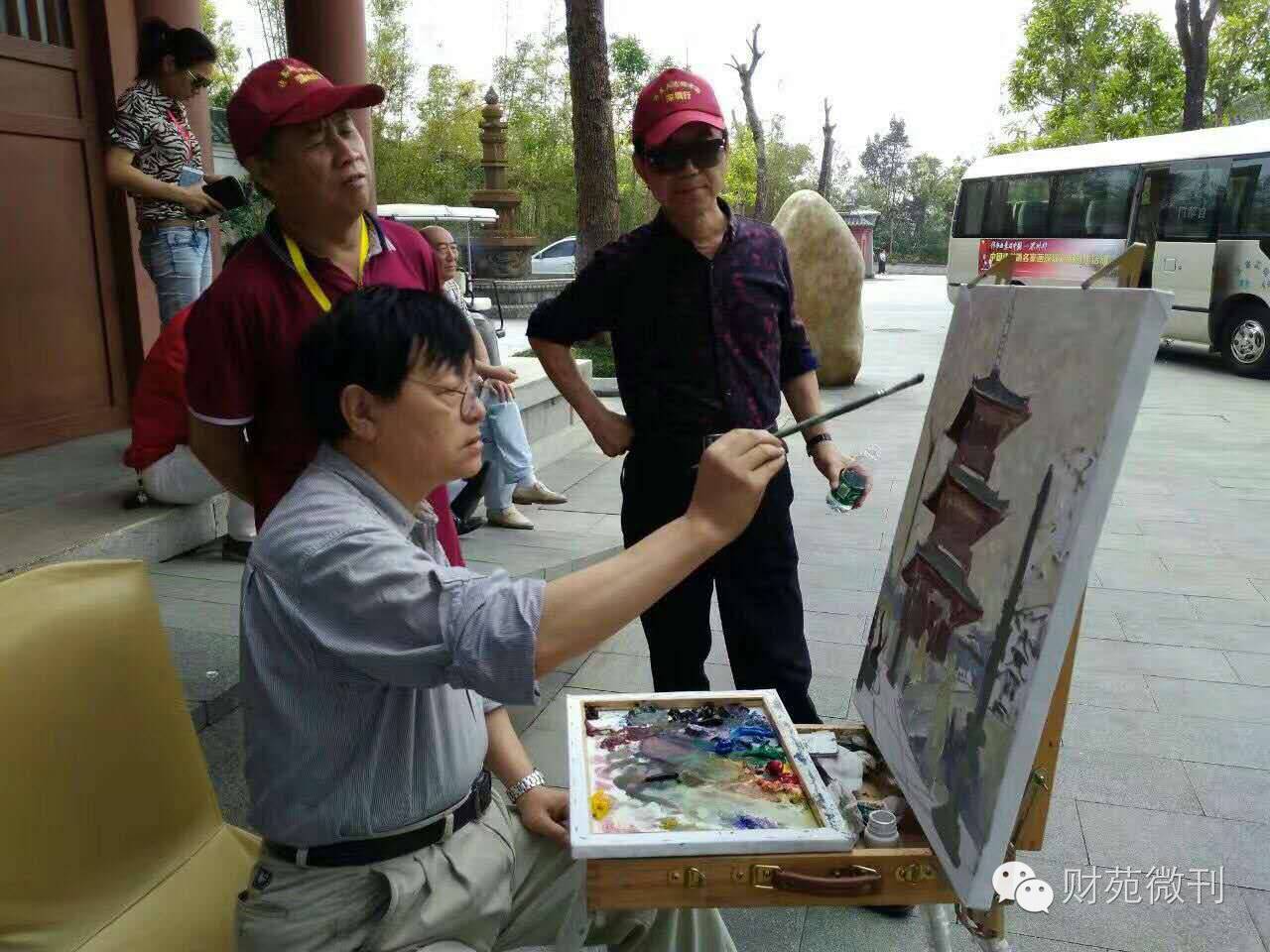 上图为:诗书画意艺术家们在深圳湾公园、春茧大运会体育馆、大运会火炬、世界之窗、科技园区等地采风创作。