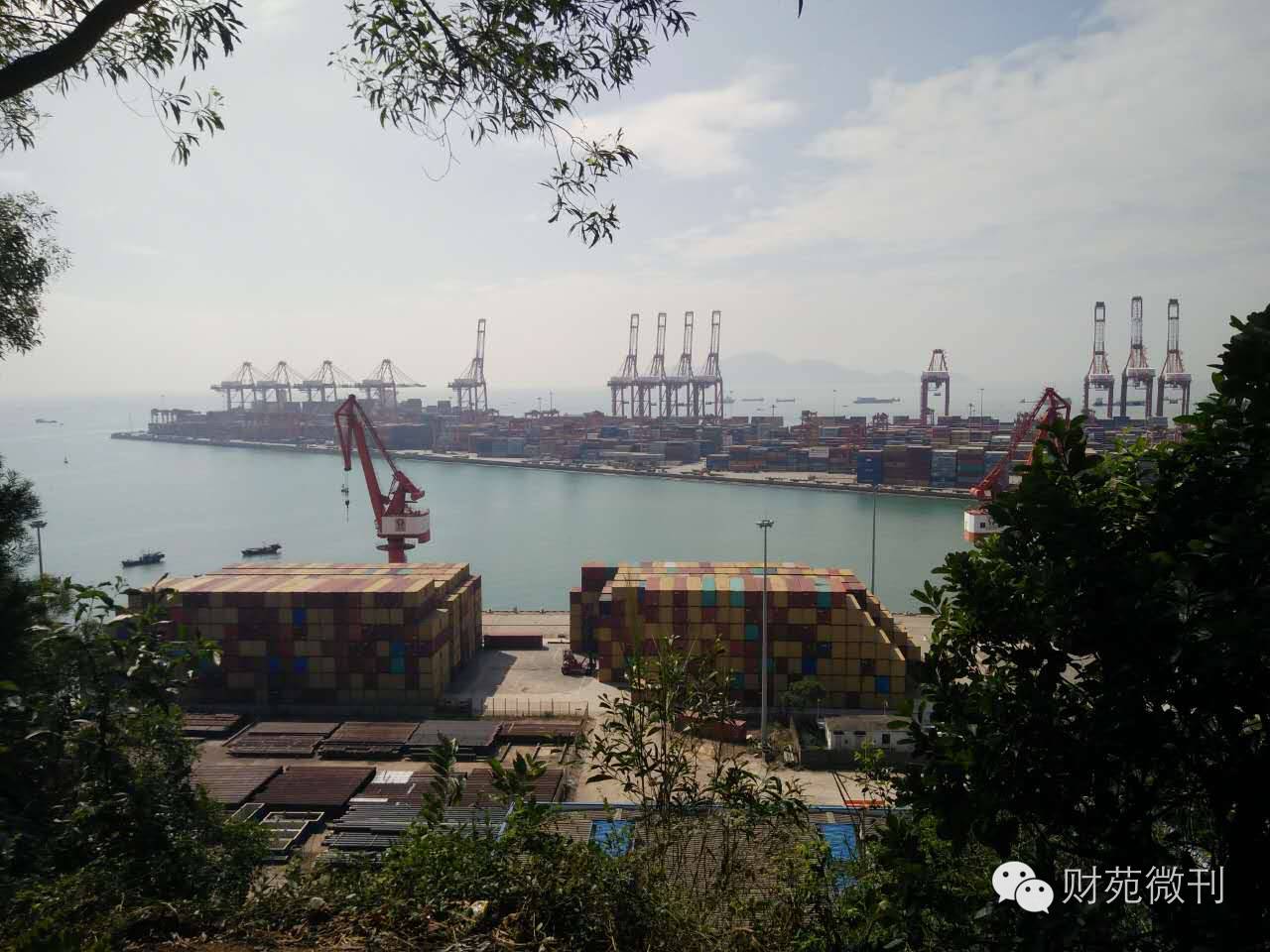 上图为:改革开放第一炮所在地处观繁忙的蛇口码头。