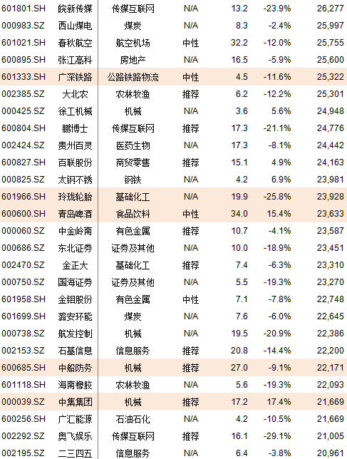 高亮个股为新加入标的